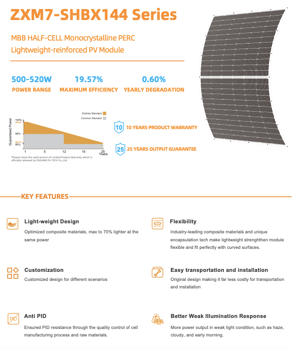 Panel fotovoltaico de 510w monocristalino flexible